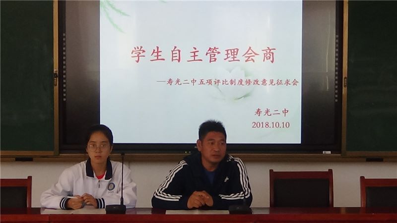 为全面提升学校德育工作水平和学生自主管理能力,进一步完善我校学生日常管理的五项评比制度,10月10日,学生教育中心组织各班班长及学生代表在智厅小报告厅举行了学生自主管理会商会议。学生教育中心丁清源主任出席会议,会议由学生会主席马玉婷主持。