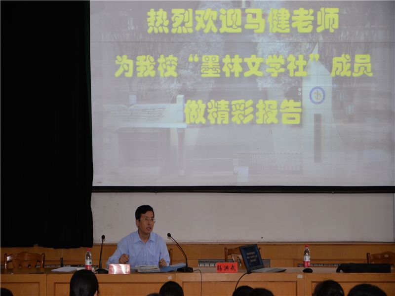 报告会上,马健现身说法,结合自己的创作经历,从文章拟题、抓典型细节、捕捉精彩瞬间、润色语言等方面作了细致耐心的讲解,他诙谐幽默的语言、自然潇洒的谈吐、渊博丰富的学识不时赢得学生们热烈的掌声。我校墨林文学社成员认真听讲,虚心借鉴,一致表示受益匪浅,收获颇多,决心认真学习写作知识,进一步开阔视野,努力培养写作兴趣,以更加优秀的作品展示我校文化建设成果和当代中学生的精神风貌。