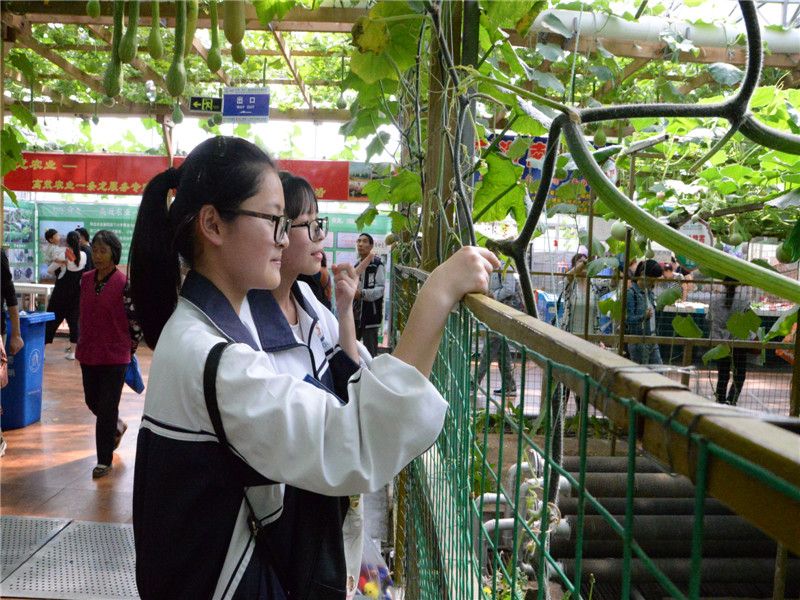 今年的菜博会以“蔬菜硅谷,绿色胜境”为主题,十二个主题鲜明的展馆用高科技农业技术手段为参观者呈现了一道道精彩的科技视觉盛宴。在班主任老师的带领下,同学们实地参观了蔬菜博览会1号至12号展厅,展厅展示内容涉及种苗培育、农资、大棚建造设施材料、农产品及蔬菜加工产品、高新技术成果项目和其他与蔬菜相关行业产品等。展区内果菜飘香,流水潺潺,精品荟萃,绿意盎然,各种用种子和果实制造的动物塑像栩栩如生、惟妙惟肖,各类奇异的景观造型极大地激发了同学们的参观兴趣。