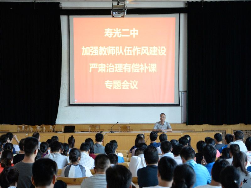 为严格贯彻落实寿光市教育局《关于加强教师队伍作风建设严肃治理有偿补课的实施方案》,进一步加强师德师风建设,规范教师职业行为,坚决杜绝在职教师进行有偿补课、有偿家教等违规办班行为,树立良好的学校形象和教师形象,我校于7月3日下午在多媒体教室召开专题会议。