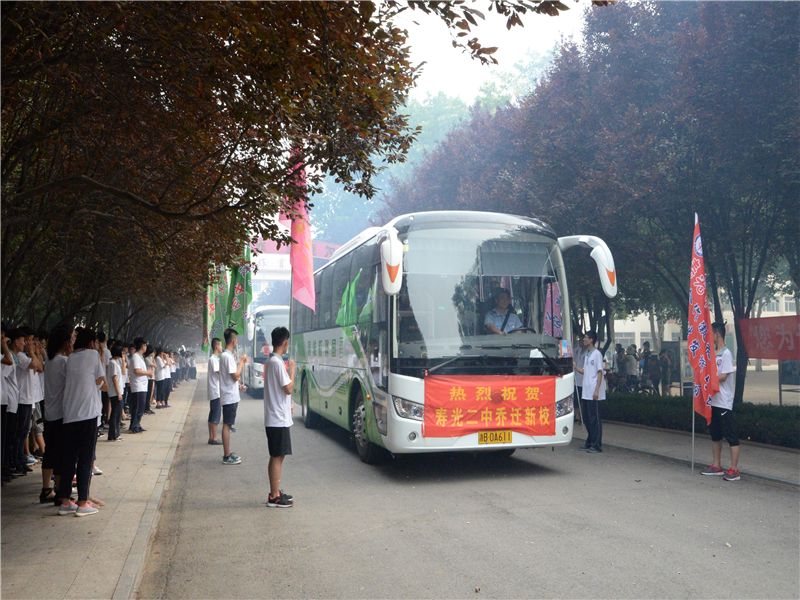 9:48分,车辆到达新校区。学校领导、师生代表共同接车。现场彩旗飘扬、掌声雷动、礼炮齐鸣。在庄严的升国旗仪式后,孙安源校长发表致辞,他强调新校的建成启用,不但对于全面提升学校竞争实力,打造优质名校品牌,开创新的办学局面,具有划时代的战略意义;而且对于扩大办学规模,优化生源基础,丰富教育内涵,促进学校持续、健康、和谐发展,具有深远的现实意义。