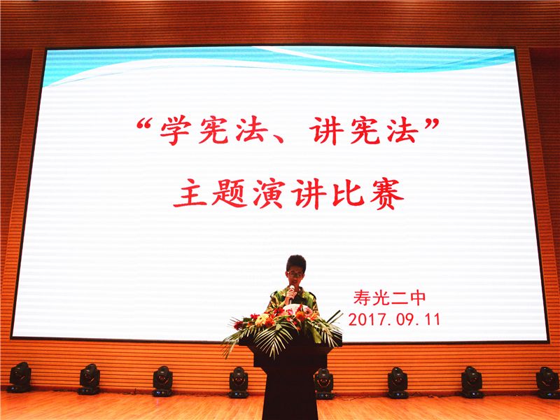 为进一步弘扬宪法精神,普及法律知识,加强在校学生对宪法的认知与体会,不断增强法治观念,更好地发挥法治宣传教育在构建和谐校园中的作用,全力推进依法治校工作。9月11日晚19:30,我校在智厅举行“学宪法、讲宪法”主题演讲比赛。来自高一24个班级的24名选手参加了此次比赛。比赛由学生会主办,学生教育中心丁清源主任主持。