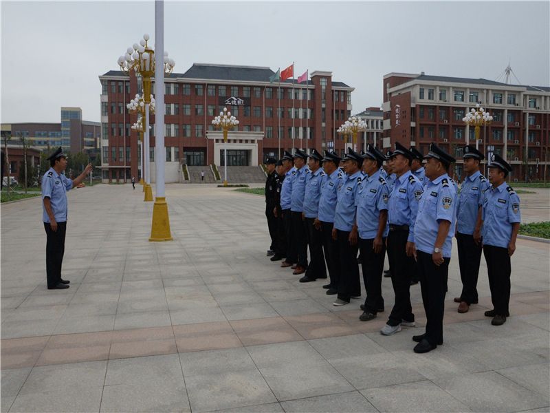 本次培训内容包括仪容仪表整顿、队形队列训练、门卫日常规范管理与操作流程等方面的内容。金盾保安公司李德营队长对安保人员的仪容仪表作了具体的要求,并亲身示范队形队列的动作要领;我校安保科张法山主任从机动车辆的管理、学生家长入校、学生进出校园等门卫日常管理规范和操作流程进行了详细的讲解。全体安保人员认真听讲,刻苦训练,取得了良好的培训效果。