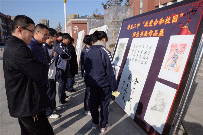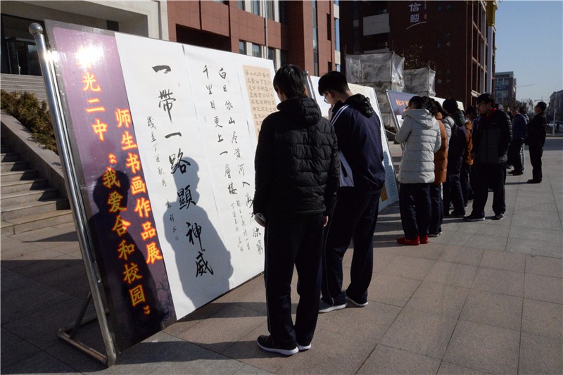 为丰富校园文化生活,彰显二中学子青春活力,营造我校“合和”文化氛围,2018年新春到来之际,我校在大德广场举办“我爱合和校园”师生书画作品展。
