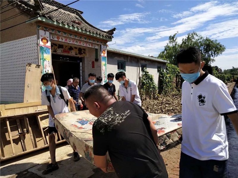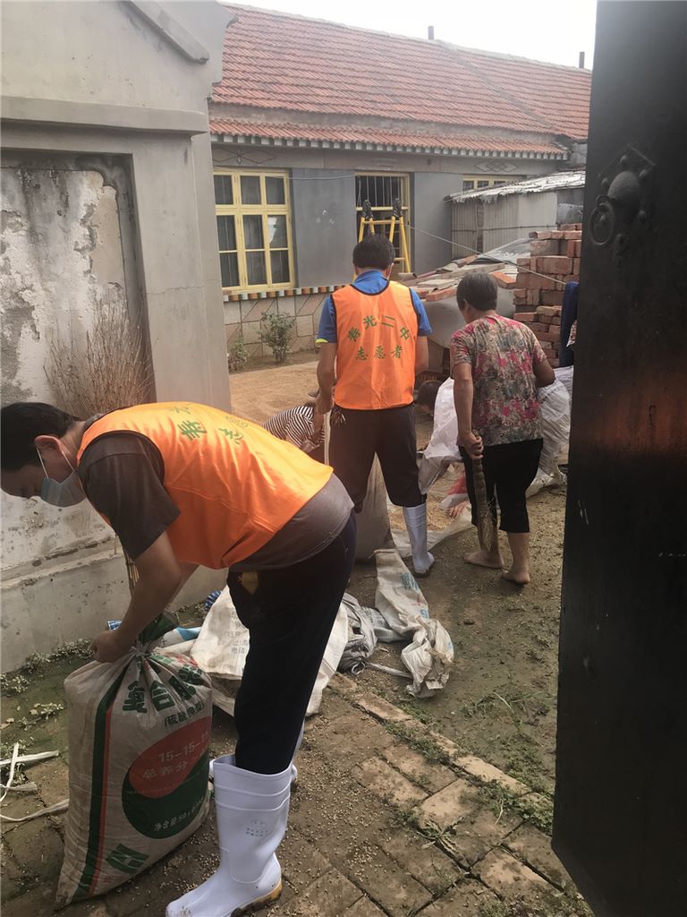 受灾的照片、视频一次次冲击着寿光二中全校师生的心灵。洪水无情,二中有义,为帮助受灾群众尽早度过难关,寿光二中认真落实教育局抗洪救灾会议精神,迅速行动,8月23日上午,立即购买了灾区急需的50箱方便面、60包矿泉水、5箱榨菜、10箱消毒粉、10把大扫帚、7张铁锨等救灾物资,第一时间送至灾区;并迅速召集20余名教师组成寿光二中义工队,在夏发德副校长、杨风杰副校长的带领下,奔赴受灾严重的上口镇口子村积极参加救灾工作。