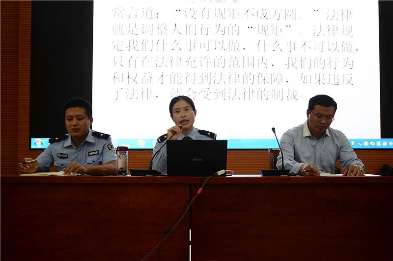 为提高青少年遵纪守法意识,有效预防未成年人违法犯罪,做一个知法、懂法、守法的合格高中生,9月20日下午,寿光二中邀请寿光市公安局洛城派出所张明霞警官为我校高一新生做了一场精彩的法制教育报告会,会议由学校安保科张法山主任主持。