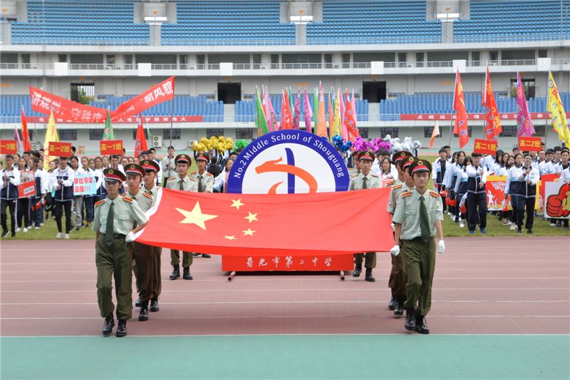 青春的梦想,飞扬如金秋之风;青春的笑容,灿烂如春晓之花。10月7日下午,寿光二中2018年秋季田径运动会如期举行,欢快的运动员进行曲奏响,国旗队、鼓乐队、彩旗队、裁判员方队、各班运动员方队……踏着整齐的步伐一一从主席台前经过,此时的德润绿城体育场顿时变成了欢乐的海洋、运动的乐土。