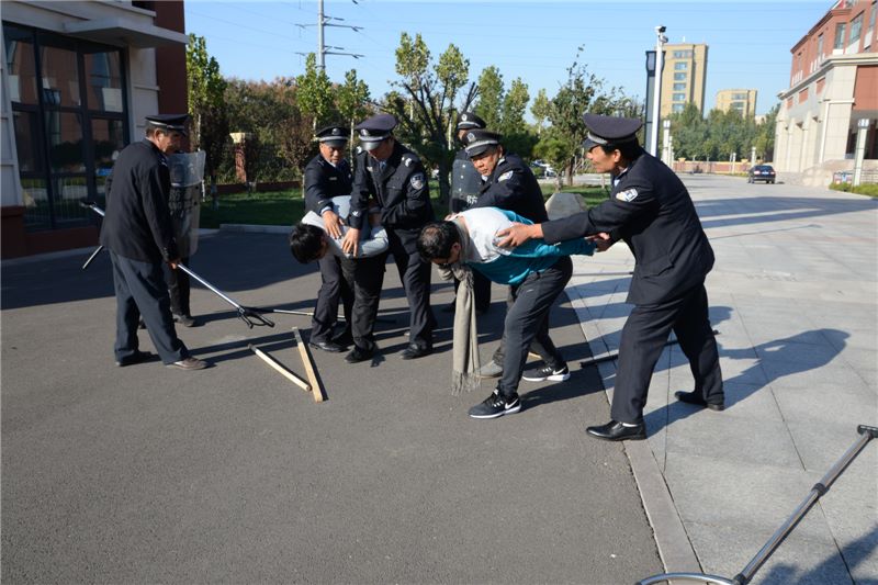 为切实强化校园安保工作,提升对突发性暴力事件的反应和处置能力,提高安保人员防暴技能,11日上午,寿光二中举行反恐怖袭击演练活动。