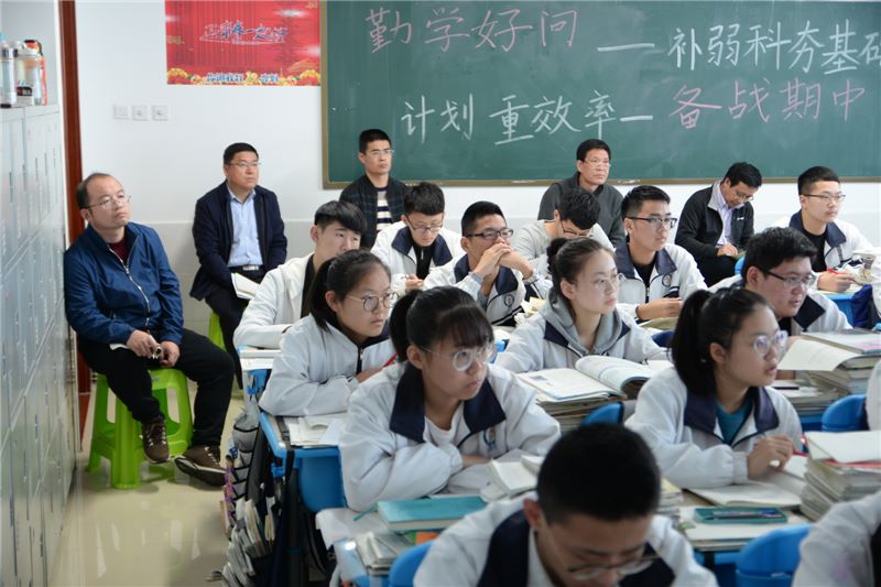 本次调研活动分三个步骤进行。首先,市教科院领导专家们分学科深入课堂听课,并利用大课间对部分学生进行了问卷调查,深入了解教情学情。其次,分学科进行座谈交流。每学科的教研员根据听课的情况,进行评课和针对性指导,座谈会上,市教科院领导专家在对我校教师的执教水平、六环节高效课堂改革的效果、师生奋发进取的精神风貌给予充分肯定的基础上,也指出了存在的不足。随后,各学科教研员就基础年级教育教学工作和高三年级一轮复习备考分别提出了针对性的建议,他们强调,基础年级要紧密结合新课程、新高考改革,深入实施选课走班教学,不断强化学生生涯规划教育,高度重视学生良好习惯的养成,努力提升学生核心素养;高三年级要深入研究新课标、新考纲,详细钻研历年高考试题,把握高考新动向,大力实施课堂教学改革,努力夯实学生“双基”,不断强化学生思维品质的培养,全力打造一轮复习高效课堂,全面提升复习备考质量。
