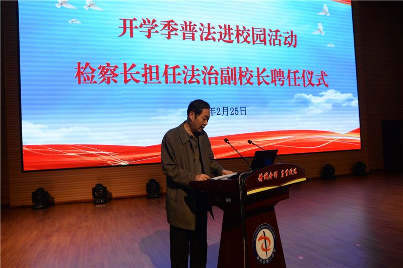 为提高学生的法治素养和自我保护意识,有效预防青少年违法犯罪,2月25日下午,我校在智厅大报告厅举行“开学季普法进校园活动暨检察长担任法治副校长聘任仪式”。寿光市检察院党组书记、检察长孙炜,市教体局教科研中心主任朱导泉,我校全体班子成员以及高一一千二百余名师生参加了本次活动。
