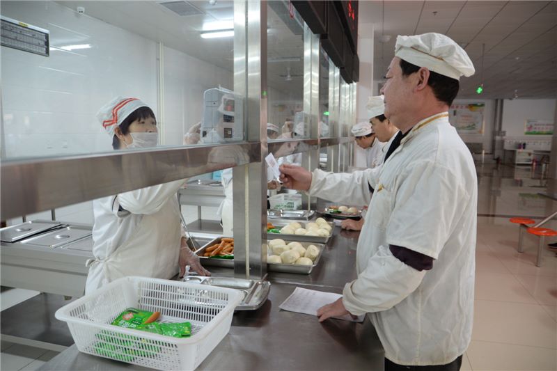 第二阶段为售饭大比武阶段,考验的是餐厅员工打饭的速度和精度,为保证此次比赛的公平公正,生活科制定了详细的比赛方案,安排专人计时,计算消费金额,评委手持写有五条买饭信息的纸条,连续购买饭菜,力求真实模拟学生买饭的状态。除了比速度,还要比盛菜的准度,此外对于装盘的美观度也有相应的规定。比赛结束后,评委依据用时多少、计算消费金额是否准确、托盘盛菜是否美观等,评出一等奖5名,二等奖10名。