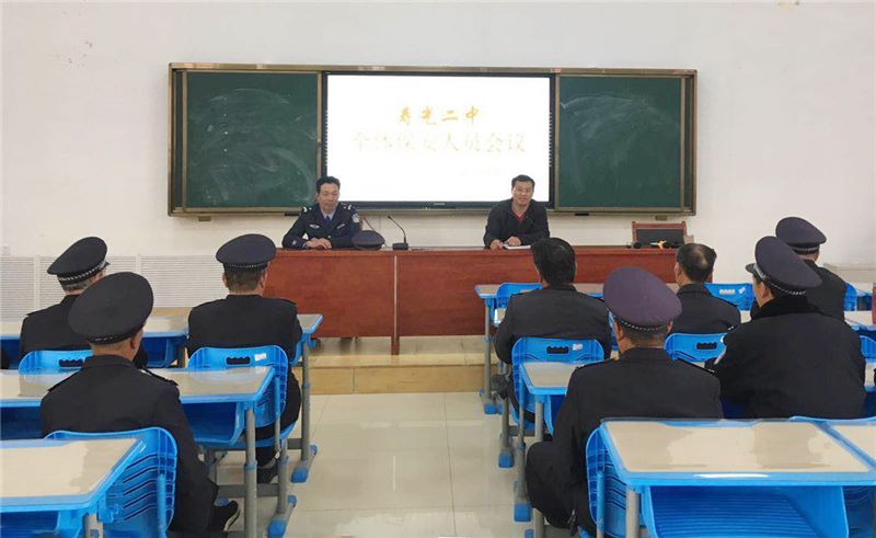 校园安全重于泰山。会上,张法山主任针对学校人口密度大、安保任务重、管理范围分散、工作难度大等实际情况,分别从门禁管理、家长接待、节假日校园管理等方面做出要求与部署;同时从了解学校、明确责任、严明纪律、提升素养四个方面对学校安保人员进行了培训。随后,王振中班长根据我校实际情况,就提升防范意识、强化门禁管理、加强校园巡查等方面做了详细安排。