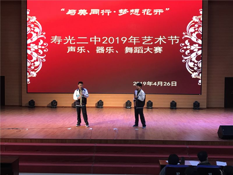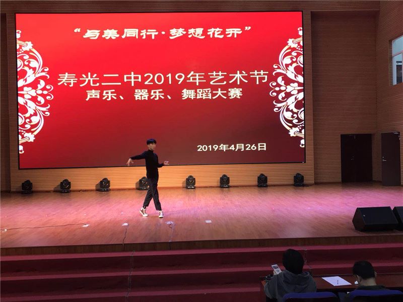 为深入贯彻市教体局《关于举办庆祝建国70周年校园师生艺术节》文件精神,推进我校艺术教育工作的深入开展,提高师生艺术水平,丰富校园文化生活,作为2019年学校“与美同行·梦想花开”艺术节的一部分,寿光二中“唱响青春·舞动梦想”声乐、器乐、舞蹈大赛于4月26日下午在智厅大报告厅举行。