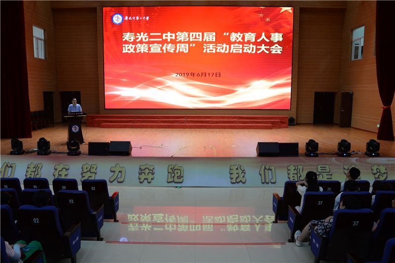 为了让全校教师更好的领会上级政策精神和文件规定,激发从教荣誉感和使命感,6月17日下午,寿光二中在智厅大报告厅举行第四届“教育人事政策宣传周”活动启动大会。