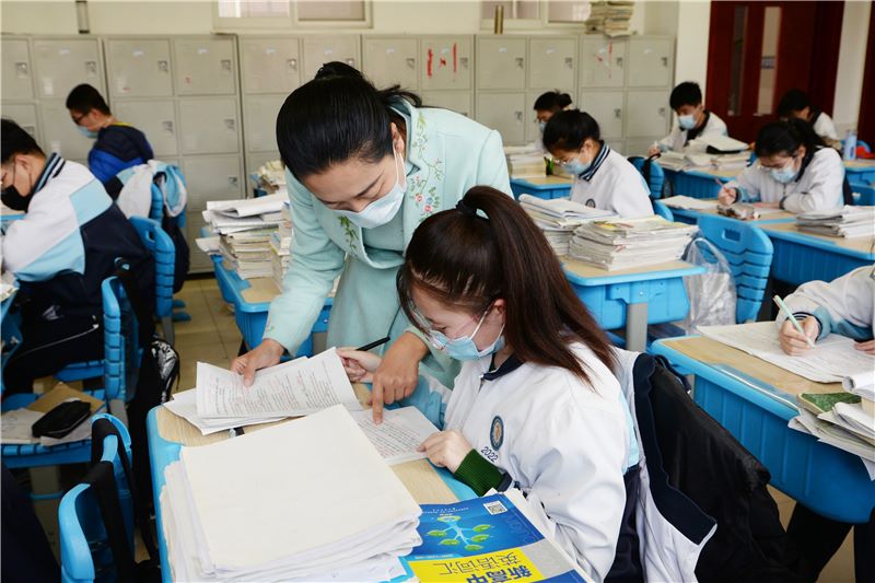 开学后,所有高三班级被分成A、B两个教学小班,张老师也从原来9班、24班的英语老师变成了四个班的老师,班级的增加,意味着每天的教学任务也增加了一倍,每天除了讲课,批改作业、听课、备课、集体教研,每天的工作繁忙且充实。为弥补前一阶段学生在家“线上学习”的不足,张永丽老师每天在承担超负荷工作之余,还会利用课余时间与学生查缺补漏、谈心交流、答疑解惑,帮助学生制定个人学习计划。“当了父母后,我才体会到父母对孩子的爱,现在我的学生正处在高三备考的冲刺阶段,我一定要鼓励他们、陪伴他们走过人生最关键的时刻。”张老师说。