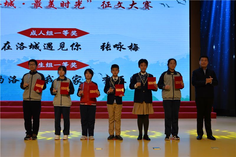 “初识洛城,是小时候跟着爸妈去菜博会,那时的洛城,于幼小的我,就是一场蔬菜的旅行……”颁奖仪式上,我校王艳老师与孙晨赫同学深情朗诵《我的洛城 我的家》,由小家的故事折射出一座城市的变迁,映照出近年来洛城街道的沧桑巨变。在此次征文大赛中,我校共有8篇作品获奖,学子们用真情的话语表达了对洛城、对生活的赞美和祝福,其中李亚同的《我的洛城 我的家》荣获一等奖,张艺涵的《我爱洛城 春夏秋冬》、付茂荣的《采撷最美的年华》获得二等奖,马志远的《青春年华与你相遇》获得三等奖,王海坤的《遇见洛城 最美时光》、朱雪艳的《遇见洛城》、苗庆云的《温柔的洛城》、刘江萍的《人生若只如初见》获优秀奖。