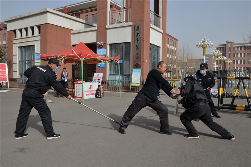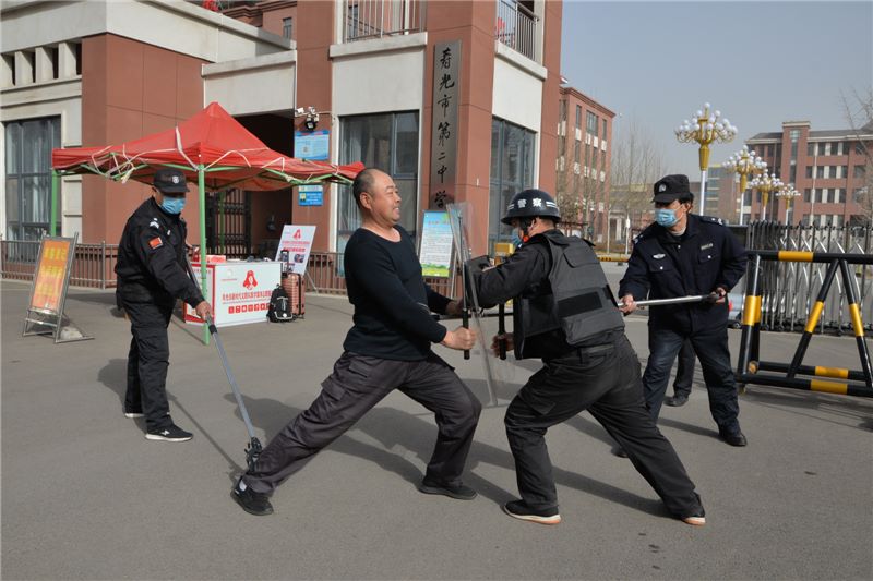 为进一步提高校园保安人员反恐防暴意识,提高应对暴恐事件的处置能力,切实保障校园安全稳定,3月16日上午,我校在南门举行反恐防暴应急演练活动。