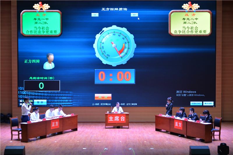 本次辩论赛共有来自全市的16支高中辩论队参加,经过初赛、半决赛、决赛,最终寿光二中、寿光一中、现代中学等四支队伍进入决赛。决赛中,高一、高二辩论队分别围绕 “治愚、治贫,谁更重要”、“当今社会,合作、竞争,谁更重要”两个观点展开,参赛选手针锋相对、你来我往、妙语连珠展开唇枪舌战。寿光二中高二辩论二队的四位辩手用出色的口才、大气的台风和彰显思想深度的论点,舌战群儒,夺得亚军,程吉业同学荣获“最佳辩手”称号。市教体局党组成员、教科研中心主任肖学军,寿光市新华书店经理刘大江,市教体局基教科科长李钦涛分别为获奖团队和个人颁发奖杯、证书。