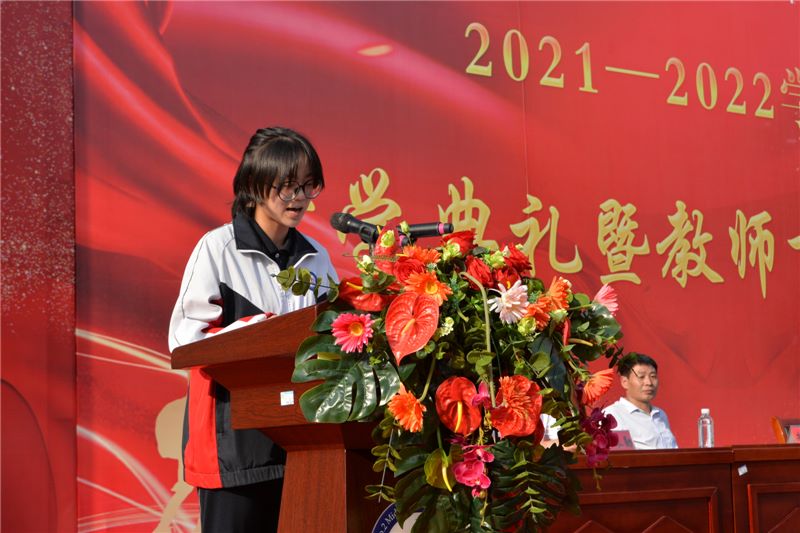 “选择高三,就是选择挑战全新的自我;选择高三,就是选择在风雨中披荆斩棘;选择高三,就是选择在崎岖的道路上勇攀高峰。”高三学子刘晓莹代表全体高三学生发言,她号召高三全体学子珍惜青春时光,努力学习,勇敢逐梦,用奋斗擦亮青春的底色,不负伟大时代,不负青春韶华。