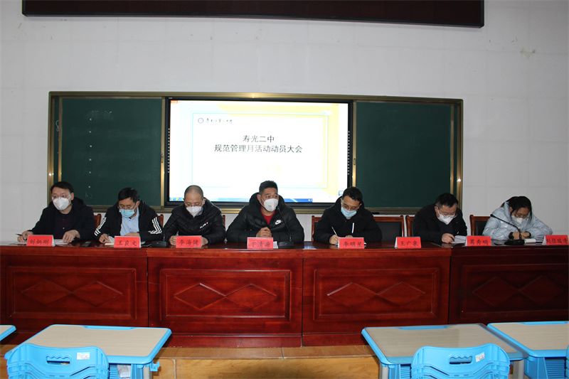 会上,刘炳刚主任宣读了《寿光二中2022-2023学年第二学期规范月活动方案》,对严防校园欺凌、打架斗殴等问题进行了着重强调。葛秀明主任就校园内预防新冠病毒感染和水痘、肺结核等传染病提出了几点要求:一是认真落实每日的晨午晚检、因病缺勤追踪、教室宿舍消毒通风等工作;二是做好个人防护,戴口罩、勤洗手、常通风,切实做好校园传染病预防。李海健主任在民族团结方面也提出了具体要求。最后,丁清源主任做总结发言,要求各班班长向每位同学们传达好会议精神,严格落实学校“规范管理月”活动的各项常规要求,统一思想,提高认识,尽快步入学习、生活的正轨。