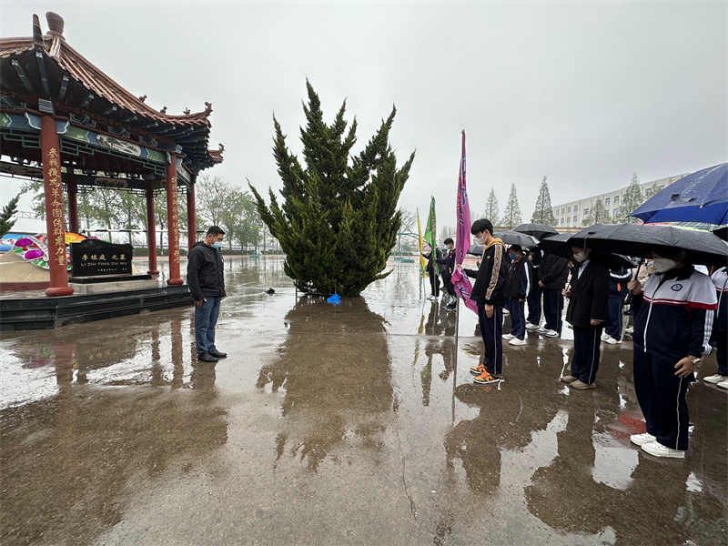 活动中,学生代表向李植庭先生墓敬献花圈,并集体默哀;学生代表向全体同学发出倡议,希望同学们牢记革命先烈的丰功伟绩,学习革命先烈的优秀品质,树立远大的理想,以吾辈之青春,护卫盛世之中国。