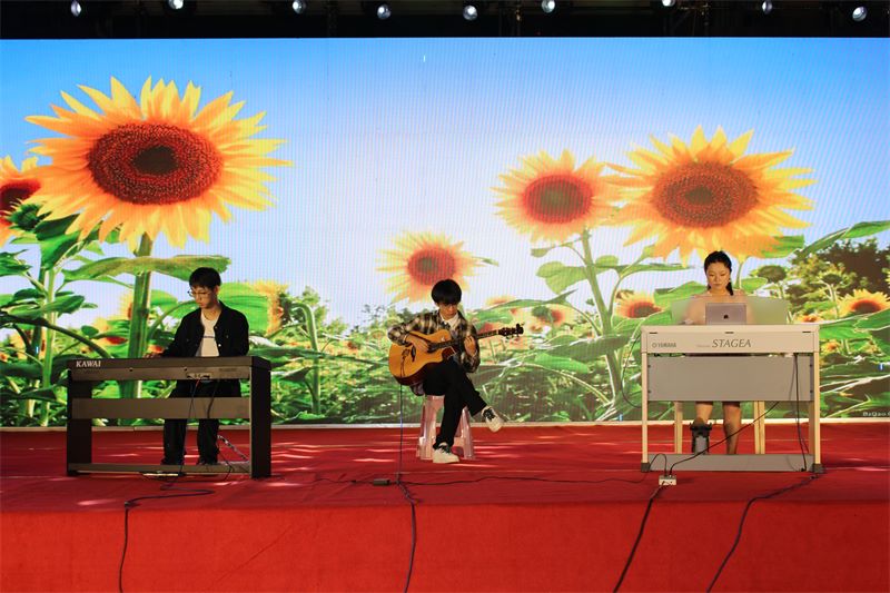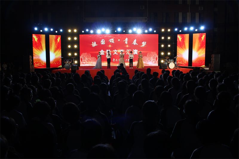 本次金秋文艺汇演分《青春梦》、《祖国颂》上下两个篇章。随着音乐响起,整场晚会在舞蹈《奔跑的青春》中拉开了帷幕。王大源同学的歌曲《稻香》激起了全场师生的共鸣,正如歌声中所唱的“不要这么容易就想放弃,多少人为生命在努力勇敢的走下去”;由张紫涵、梁子怡、孙艺轩同学带来的舞蹈串烧《追梦青春》,进一步点燃现场观众的热情,青春的活力在这一刻迸发;王文广老师带来的歌曲《这世界那么多人》,深情的歌词和生动的旋律令人动容,这世界那么多人,偏偏遇见,便是一生一世的师生情、同学情。在本次金秋文艺汇演上,来自学校安全保卫处的韩伟永师傅也为全校师生带来了萨克斯独奏《女儿情》,可谓整场晚会最大的惊喜,现场师生纷纷起立,为韩师傅鼓掌、呐喊。此外还有激情四射的爵士舞、动感十足的架子鼓、韵味悠长的古典舞……全体师生用歌声、用舞姿编织青春梦想,砥砺青春誓言。