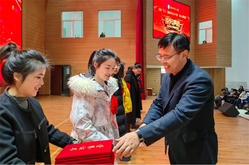 党委书记张建波为颁奖典礼致辞。他向学校全体女教职工致以节日问候,并用“致敬”“礼赞”“展望”三个关键词,充分肯定了女教职工的突出贡献。他指出,女教职工占全校教师的54%,长期奋战在教学一线,在做好本职工作的同时,还肩负着家庭责任,用实际行动诠释了教育工作者的初心使命。在这次受表彰教师中,既有坚守讲台三十载的老教师,也有引领学科发展的带头人;既有以校为家的班主任,也有默默奉献的后勤工作者。他们用平凡书写不凡,用坚守铸就卓越,展现了新时代教育工作者的风采。张书记最后强调,2025年是学校深化教育教学改革的关键之年,也是推动学校各项事业提质增效的攻坚之年。他勉励全体女教职工争做“四有”好教师的践行者、争做教育改革的先行者、争做美好生活的创造者,继续发扬优良传统,以更加饱满的热情投身教育事业,为学校高质量发展作出新的更大贡献。