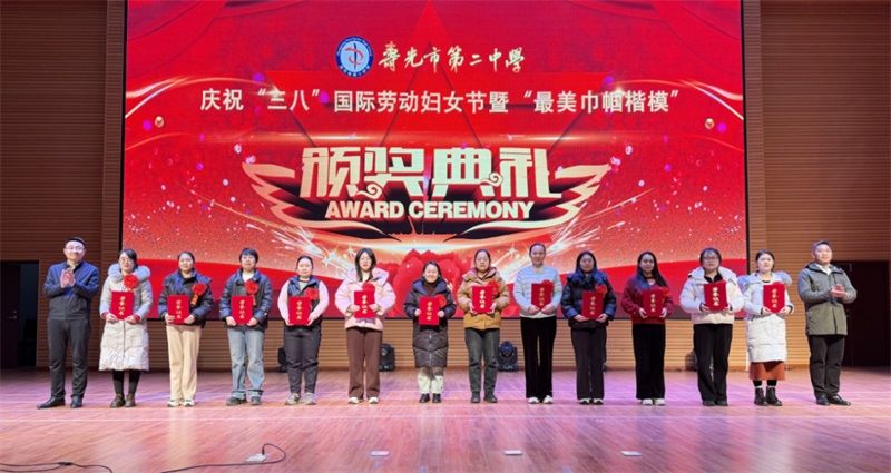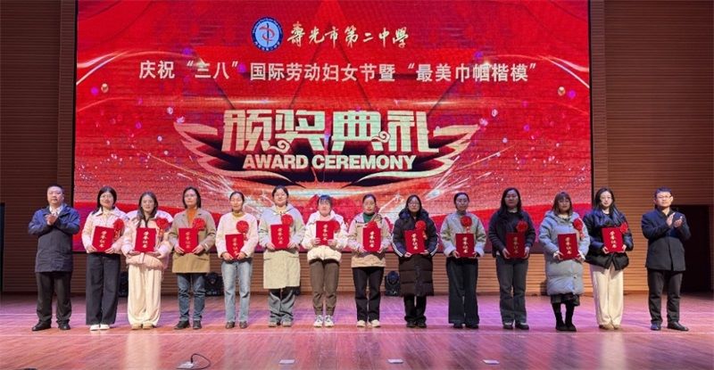 致敬巾帼力量,共绘教育蓝图。此次最美巾帼楷模颁奖典礼,不仅为“三八”妇女节增添了浓墨重彩的一笔,更彰显了我校女教职工的时代风采。她们以卓越的业绩诠释了新时代女性的责任与担当,用实际行动谱写了教育事业的动人篇章。相信在榜样的引领下,全体女教职工必将全面激扬巾帼之志,凝聚巾帼之力,彰显巾帼之美,为寿光二中跨越式发展注入澎湃动能,携手书写新时代巾帼建功的壮丽篇章。