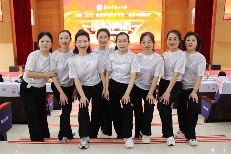 颁奖典礼不仅是对女教职工的表扬,更成为展现她们独特魅力的绚丽舞台。璀璨灯光下,孙爱玲、胡爱霞等老师以活力四射的《蹦迪舞》惊艳开场。她们热情洋溢的舞姿与默契配合,伴随动感节奏点燃全场,为颁奖礼奠定欢快隆重的基调。马祥禄老师作为男教职工代表,向全体女教职工致以诚挚的节日祝福,并深情献唱经典歌曲《在那桃花盛开的地方》。潘乐梅、谢明芹等老师带来的舞蹈《苹果香》,以优美的舞姿和欢快的节奏,表达了老师们对美好生活的热爱与追求,为现场注入了满满的正能量与欢乐氛围。王艳、吴娜、李晓玲、孟晓梅等四位老师深情演绎的歌曲《爱在天地间》,以其真挚的情感和动人的旋律,温暖了在场每一个人的心。