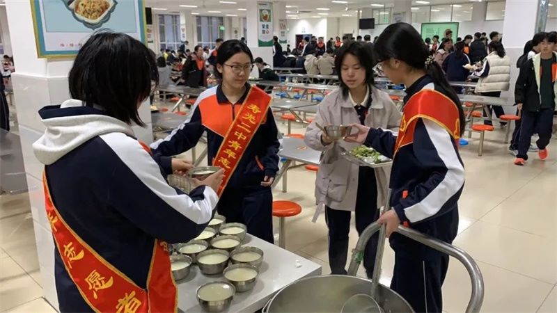 “雷锋精神,人人可学;奉献爱心,处处可为。”在校内,任课教师利用课余时间,与学生开展“一对一”谈心活动,提供学业指导和心理关怀,助力学生全面发展,以自身行动为学生树立榜样。学生之间也广泛开展互帮互助活动,无论是学习答疑还是生活关怀,同学们真诚相助,既增强了班级凝聚力,又营造了团结友爱的班风,让校园充满温暖与正能量。在学校食堂,教师志愿者也积极开展“关爱学子·护航成长”志愿服务活动,以亲切的关怀温暖学生,彰显出师者的大爱与校园的和谐;身着红马甲的学生志愿者用温暖的微笑和贴心的举动,践行着“我为同学留美好”的承诺。这些点滴行动正是雷锋精神在校园的生动体现,激励着更多师生投身志愿服务,传递温暖与正能量,让文明之花开遍校园每个角落。