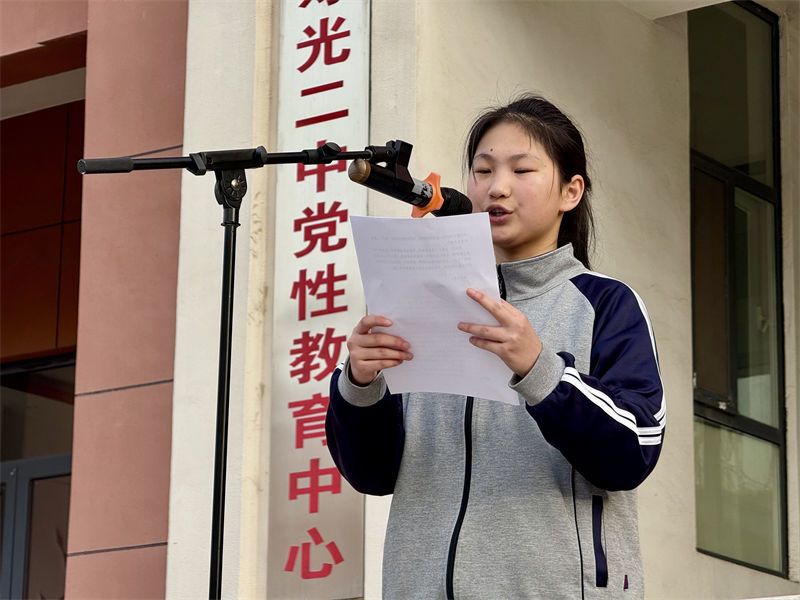 仪式在庄严的国歌声中拉开序幕,鲜艳的五星红旗在全体师生的注目下冉冉升起,师生们高唱国歌,向国旗致以最崇高的敬意。2024级12班苗淑琪同学首先发表了题为“破挫折坚壁,逐梦想之光”的演讲。她从自身经历出发,讲述了自己在数学成绩不理想时,没有沉浸在挫败中,而是积极调整学习方法,最终取得显著进步的故事,生动诠释了“挫折是成长的契机”这一观点。她还强调了“躺平”的危害,鼓励大家积极逐梦前行,并列举了匡衡凿壁偷光、周恩来总理为中华之崛起而读书的励志故事,激励同学们作为新时代青年,要肩负国家和民族的希望,以积极心态和坚定信念追逐梦想。