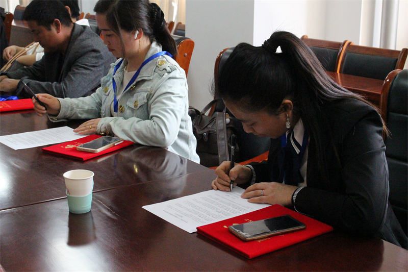 随后,张建波书记为各位委员颁发聘书并合影留念。学校膳食处主任张法山与各位委员签订履职承诺书。