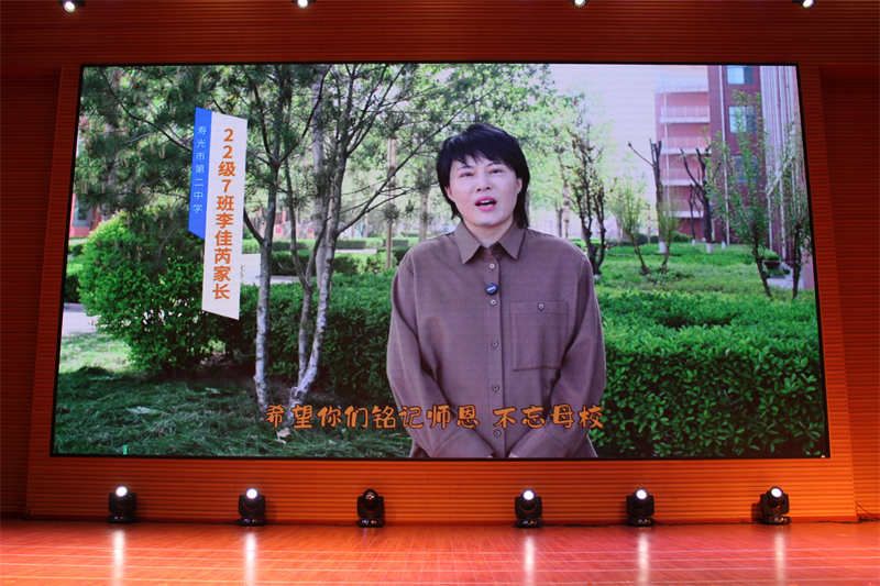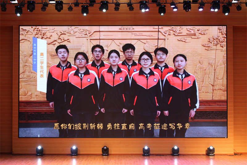 “二中是你们的母校,也是你们逐光远航的起点,愿你们铭记母校,牢记老师教诲,树立报国读书的远大理想,搏击高考,扬帆远航。”陪伴学子三年的学校党委委员、高三级部主任王令成寄语即将离别的学子,一字一句,字里行间,倾注着一位老师对每一位学生的谆谆叮嘱和深深祝福。师生情缘,值得珍藏一生!同学们即将踏上未来的征程,老师们纵使有千般不舍,但依然期待着大家展翅高飞。