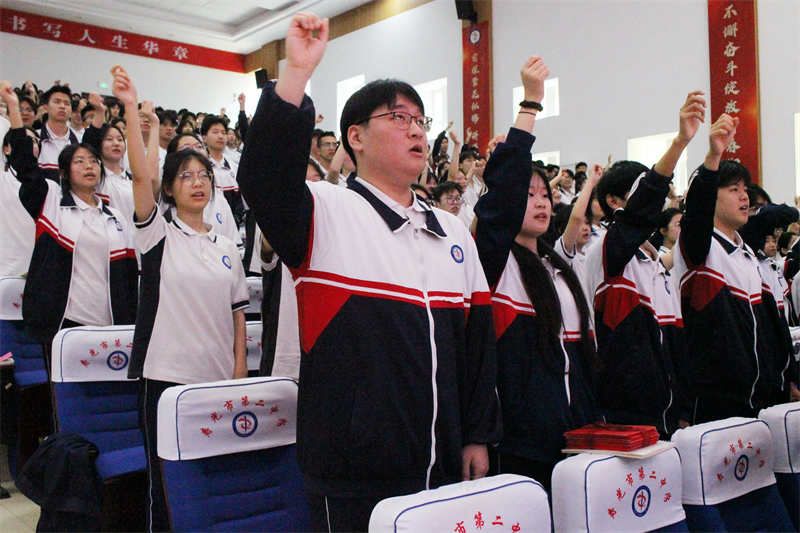 “不负父母期盼,不负恩师厚望 ……二中必胜!”最后,在主持人的带领下,2022级全体学生紧握右拳,庄严立下青春与必胜的誓言。铮铮誓言,见证奋斗历程;声声呐喊,凝聚蓬勃力量!