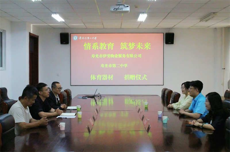 五月校园生机盎然,爱心捐赠传递温暖。5月22日上午,寿光市伊美物业服务有限公司体育器材捐赠仪式在寿光二中三楼会议室举行。寿光市政协常委、伊美物业服务有限公司经理马金辉,寿光二中党委书记张建波等领导出席活动。捐赠仪式由寿光二中党委副书记夏发德主持。
