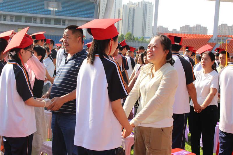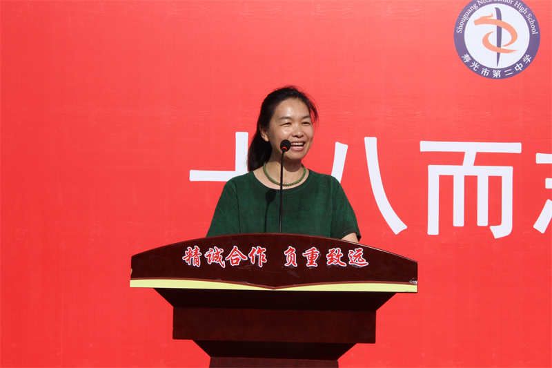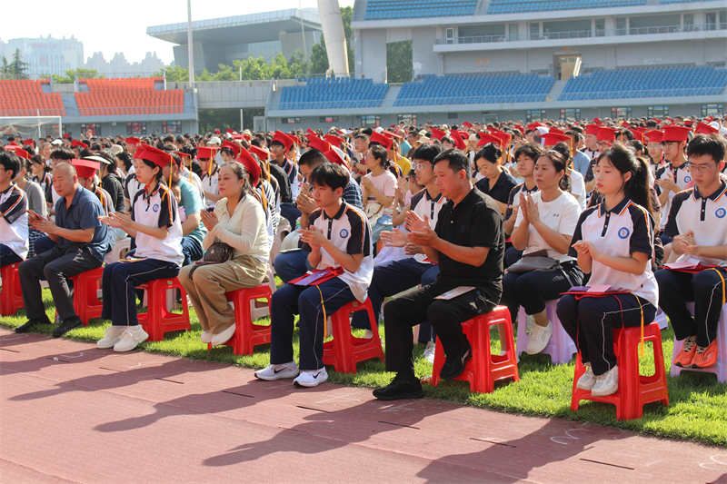 十八载光阴里的晨霜暮雪,都凝结着父母温馨的陪伴印记;十八载成长中的春种秋收,全承载着双亲辛劳的岁月沉淀。作为家长代表,2023级9班王铠荣同学的妈妈郑国芬女士首先向三尺讲台前倾尽心血的老师们表示最衷心的感谢,向迈入成人之门的同学们表示热烈的祝贺。随后她以母亲的温柔与期盼寄语:“孩子们,请静心凝神,让拼搏充盈每一刻,让自信成就每一天;让实力的增长成为习惯,用你们奔跑的身影,去诠释奋斗的真谛!”