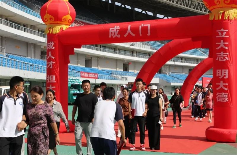 青春点燃梦想星火,岁月放飞希望羽翼。在学校领导与师长们的见证下,同学们踏上红毯,与父母相携并肩,共同跨越象征成长的成人之门。他们昂首挺胸,意气风发,挥别懵懂青涩的少年,将人生的责任与担当扛上肩头。从此,每一个跃动的身影都将成为中华民族伟大复兴征程中,谱写时代华章的青春力量。