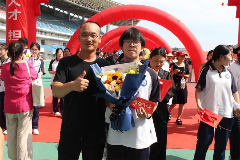 加冠之礼,不仅是一场仪式,更是一份生命的宣言。它象征着少年从青涩走向坚毅,从依赖走向自立,从懵懂走向担当。在悠扬旋律中,家长郑重地为2023级学子戴上成人礼帽,扶正流苏。加冠礼后,学子深深鞠躬,向父母谢礼,眸光中闪烁着对十八载养育之恩的千钧感念。一个拥抱,刹那芳华。此时,这场仪式早已超越里程碑的意义,化作铭刻心间的人生必修课程。