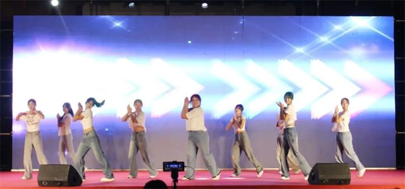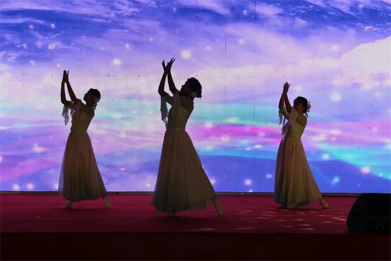 舞台上,同学们载歌载舞,尽情绽放青春风采,老师们也不甘示弱,纷纷登台献艺。“往事又敲开记忆的门,时间冲走了青葱岁月,”陈士高老师演唱的《倾情一生》,仿佛在娓娓诉说着岁月的故事;王艳老师带来的歌曲《贝加尔湖畔》,深情的歌词和生动的旋律令人动容,场下掌声经久不衰。此外还有激情四射的爵士舞、典雅飘逸的古典舞、古韵悠长的旗袍走秀……参演师生用歌声编织青春梦想,用舞姿砥砺青春誓言,在活力的舞台上尽情绽放属于自己的璀璨光芒。