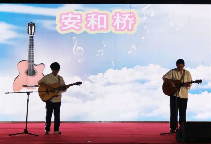 随着音乐响起,舞蹈《舞动青春》以动感节奏点燃全场,拉开了此次文艺汇演的序幕。歌曲《耿耿于怀》唱出了每个人心底那份关于年少时光、未曾放下的惦念与遗憾;舞蹈串烧《舞力全开》,进一步点燃现场的热情,青春的活力在这一刻迸发;“我知道那些夏天,就像青春一样回不来……”吉他弹唱《安和桥》如一股温暖的清泉,流淌在师生心间;架子鼓表演《我们的时光》,将同学们在二中学习、生活的点滴如同一部微电影展现在观众面前,这不仅是一次精彩的演出,更是一次对青春岁月的回眸。