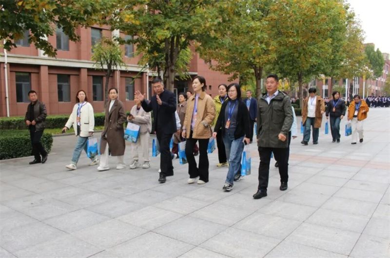信任与责任在彼此心间传递,凝聚成一股坚实的教育合力。仪式结束后,张建波书记、李怀春校长陪同家委会委员们实地参观了校园环境、大课间活动、学生教室、宿舍及餐厅。委员们对优美的校园环境、教师饱满的工作状态及温馨的住宿条件赞不绝口。在篮球场,委员们驻足观看学生在大课间进行的跑操、立定跳远、单杠、跳绳等活动,对学校为提升学生身体素质所采取的举措给予了高度认可;在餐厅参观环节,张书记详细介绍了日常管理规范、食品安全流程及“师生饭菜同价”政策,并邀请委员们与学生共进午餐,零距离体验校园餐饮服务。