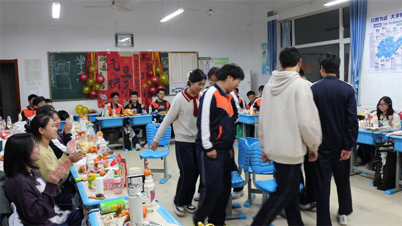 夜幕初降,教学楼里喜气洋洋,化作欢乐的海洋。18时30分,各班联欢晚会正式拉开帷幕。寓意吉祥的鲜果承载着学校的美好心意,师长的殷切叮咛则是无价的成长箴言。随着同学们对过去一年的温情回顾,家长也通过自制视频送来远方的祝福。父母的话语,字字充满关爱,句句触及心灵,让许多同学热泪盈眶,更激发了同学们勤奋学习的决心。随后,同学们精心筹备的节目轮番登场:悠扬的歌声、翩跹的舞姿、幽默的小品、激昂的朗诵、娴熟的乐器演奏,还有趣味十足的游戏互动,精彩纷呈,掌声与喝彩此起彼伏,火热氛围驱散了冬日严寒。晚会期间,学校领导深入各班级,为大家送上新年祝福,勉励大家珍惜时光、努力拼搏。这份关怀与鼓舞,让同学们深切感受到学校大家庭的温暖,蓄满了新年奋进的动力。