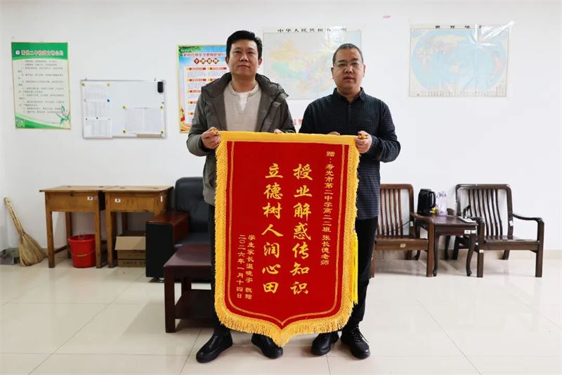 锦旗载心意 深情谢师恩 ——寿光二中高二家长向学校和老师赠送锦旗