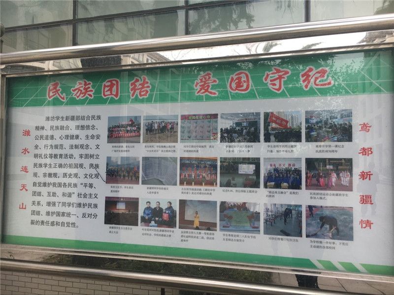 在潍坊中学,教师们首先参观了学校的新疆部高中预科班、高中文化教育班,随后参观了该校的民族团结文化长廊,进一步学习了民族团结交流的相关细则。潍坊中学的相关负责人还播放了学校的新疆民族班发展历程及丰硕成果。