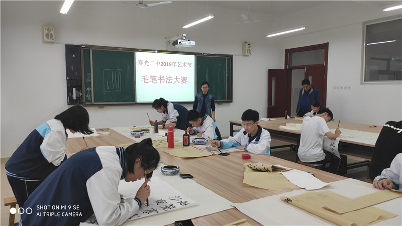 为进一步加强艺术教育,发展学生艺术素养,推动学校文化艺术活动深入开展,作为2019年学校“与美同行·梦想花开”艺术节的一部分,寿光二中“自信展风采·书写绘青春”硬笔和毛笔书法大赛于4月24日下午,在智厅小报告厅、书法社团教室同时举行,300余名选手由各班严格初选并代表班级参赛。比赛中每一名学生都满怀激情,用心书写,他们握笔正确,坐姿端正,表现出良好的书写习惯,所写作品笔画流畅,结构匀称,整体美观,展示了较高的书写水平。经过认真评审,本次书法比赛共评出获奖作品一百余副,其中高一1班、9班、16班,高二1班、12班、14班获得优秀组织奖