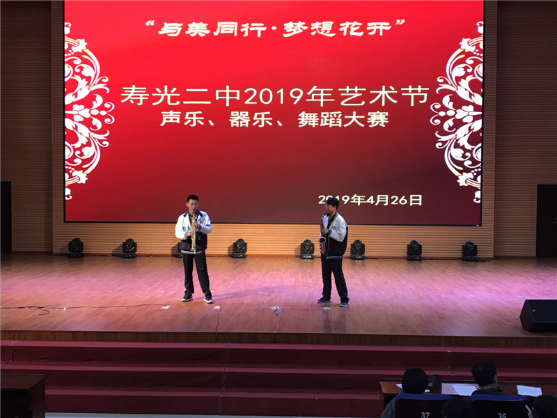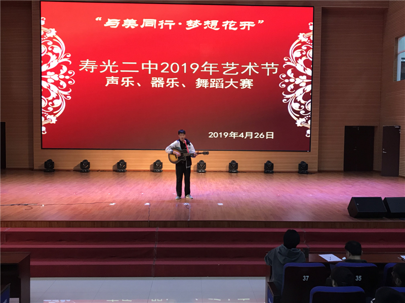 为深入贯彻市教体局《关于举办庆祝建国70周年校园师生艺术节》文件精神,推进我校艺术教育工作的深入开展,提高师生艺术水平,丰富校园文化生活,作为2019年学校“与美同行·梦想花开”艺术节的一部分,寿光二中“唱响青春·舞动梦想”声乐、器乐、舞蹈大赛于4月26日下午在智厅大报告厅举行。