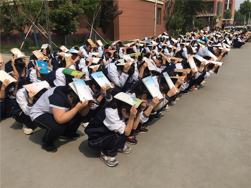 上午9时40分,第一声警报响起,全体学生迅速钻入课桌下,进行防震规避;第二声警报响起时,全体学生在任课教师的带领下,按预定疏散路线安全、快速地到广场集合整队。随后,各班主任清点并上报本班应到、实到学生人数。最后,学校安全科主任张法山就此次演练活动进行了总结发言。