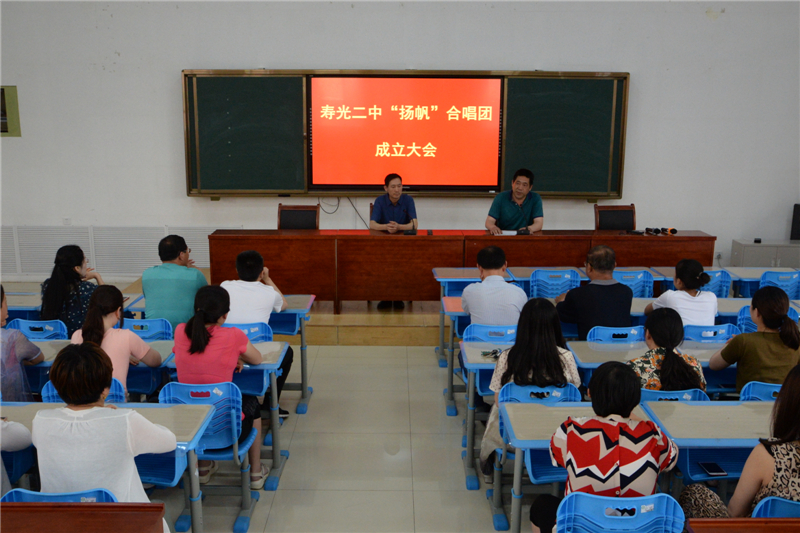 为丰富教职工业余文化生活,深化“合和”校园文化建设,提高教职工的艺术文化修养,5月24日下午,寿光二中教职工“扬帆”合唱团成立大会在智厅小报告厅举行,学校领导董建水出席大会,会议由艺体科主任杨春祝主持。