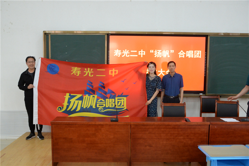 大会还宣布了“扬帆”合唱团的领导组织架构,推举董建水校长为名誉团长,杨春祝主任为领队,马祥禄老师为团长。随后,祝继玲老师代表合唱团全体成员发言,她感谢学校为音乐爱好者提供学习交流的平台,全体合唱团成员一定会全力以赴,为繁荣学校文化事业贡献一份力量。最后,董建水校长为“扬帆”合唱团授旗。