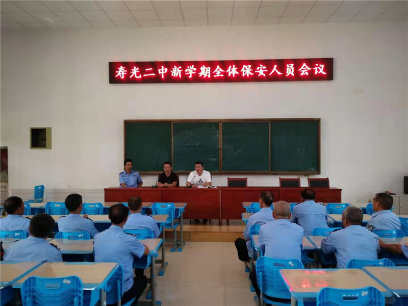 会议由张法山主任主持,他首先组织大家学习了《寿光二中保安人员工作职责》,指出近期工作中存在的不足,并着重强调了下阶段工作的注意事项。随后张主任从上岗时间、仪容仪表、门卫登记制度、校园巡查、应急处置等五个方面,对学校保安人员提出了新的工作要求。他要求,全体与会人员要进一步统一思想,高度重视校园安全保卫工作,进一步明确工作要求和岗位职责,加强校园巡查,消除校园安全隐患,为创建平安校园做出应有的贡献。